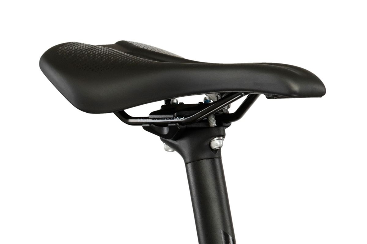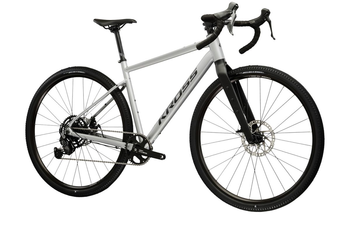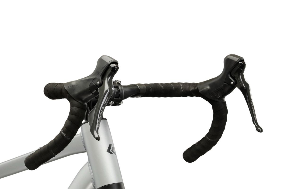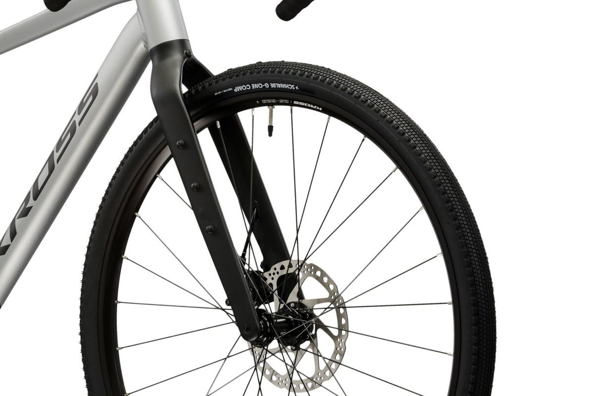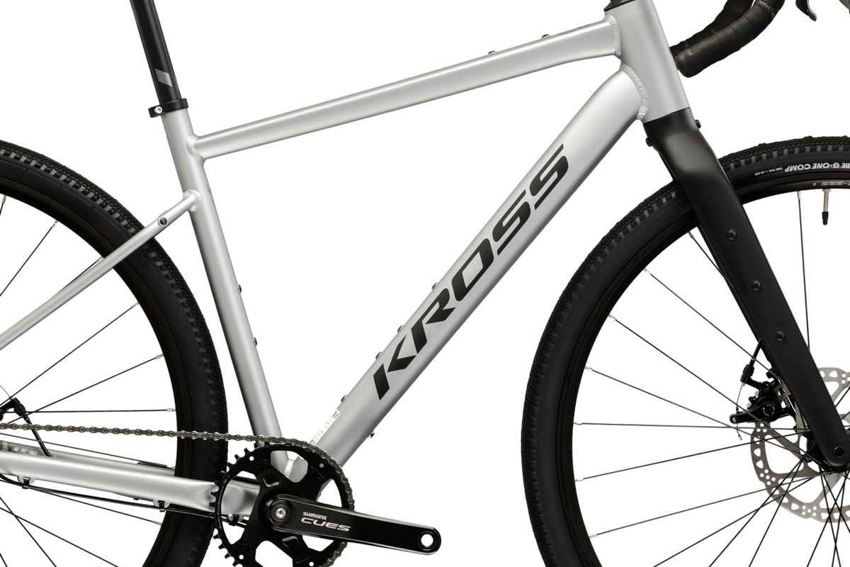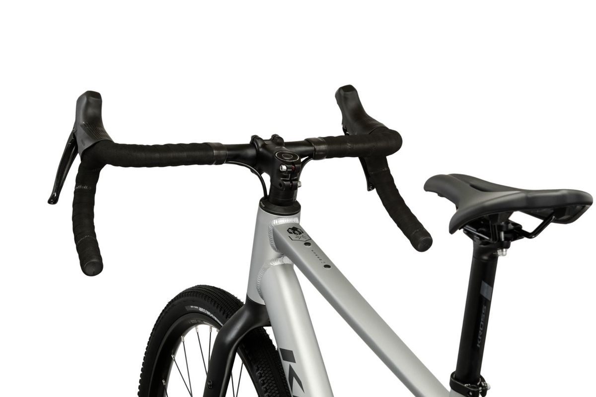 A hajtásrendszert nézve a 2026-os Esker 1.0 az új Shimano CUES 1×9 rendszerrel jön (hátsó váltó: CUES U4000, váltókar: U3030, hajtómű: U4000), a lánckeréksor pedig 11–46 tartományú. Ez a kiosztás gravelre, vagyis aszfalt nélküli utakra igazán praktikus: egyetlen első lánctányérral egyszerűbb a kezelés, a 46-os nagy lánckerék pedig segít emelkedőkön vagy megpakolt bringával is. A fékezést mechanikus Tektro C550 tárcsafékek biztosítják, elöl 180 mm, hátul 160 mm tárcsával – ez egy korrekt, jól szervizelhető megoldás, ami túrára előny, mert útközben is könnyebb vele boldogulni. Kerekeknél 700c méretű, gravel gumival szerelik: Schwalbe G-One Comp 700×45C, és a specifikáció szerint a maximális gumiszélesség 45 mm. Ez a szélesség már érezhetően javítja a komfortot és tapadást murván, miközben aszfalton sem lesz „lomha” egy belépő gravelhez mérten. Érdemes kiemelni a Selle Italia Smart Gran Fondo nyerget, amit az olasz márka kifejezetten országúti kormányos gravel és aszfaltos túra céljára fejlesztett.