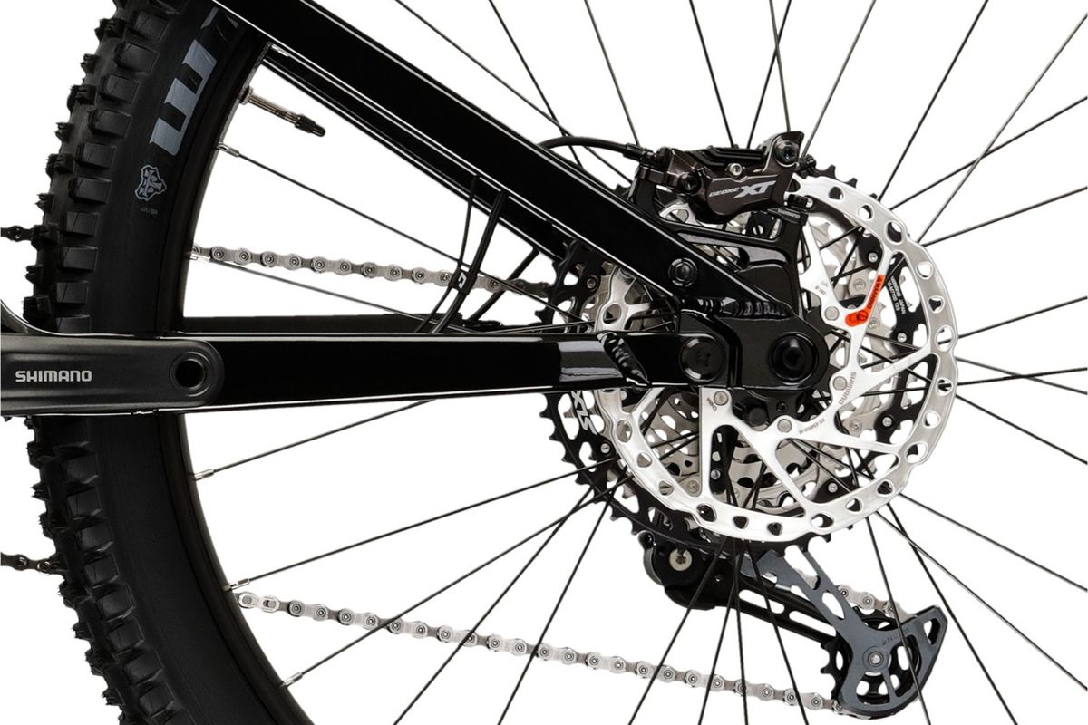 A váltásról a Shimano SLX M7100 1×12 sebességes hajtásrendszer gondoskodik, amely széles áttételtartományt biztosít a gyors sík szakaszoktól a meredek emelkedőkig. A fékezést Shimano Deore XT M8120 négydugattyús hidraulikus tárcsafékek végzik, amelyek erős, precízen adagolható fékerőt nyújtanak – mindez különösen fontos technikás, meredek lejtőkön.
