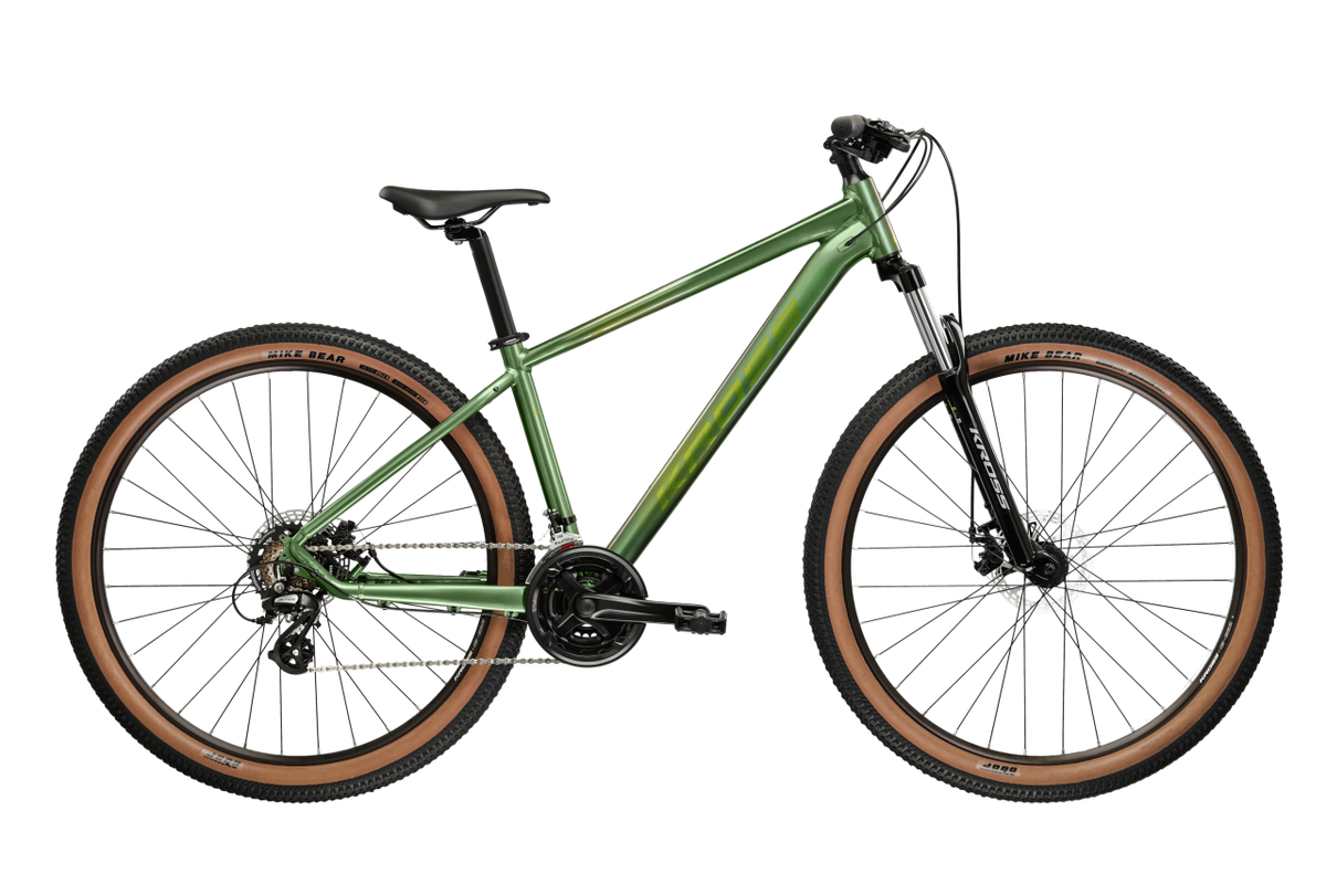 A Hexagon X200 nagyobb 27,5” kerékméretet alkalmaz, ami jobb menettulajdonságot, kisebb gördülési ellenállást tesz lehető mind aszfalton, mind terepen. A gyári BILLY GOAT gumi komfortos, stabil, és laza talajon is sokat segít a tapadásban. A KROSS a specifikációban max. 65 mm gumiszélességet ad meg, ami jól mutatja, hogy ez a bringa tényleg a kényelmes, „mindenes” használat felé van hangolva. Ha tárcsafékes kerékpárt keresel munkába járásra, hétvégi erdei tekerésekre, amely kényelmes, megbízható, illetve fontos a 100 mm teleszkóp adta kontroll, akkor a Hexagon X200 ideális jelölt.