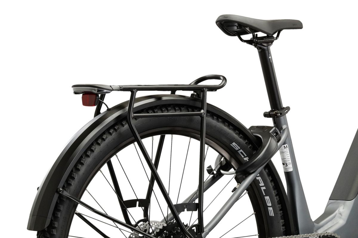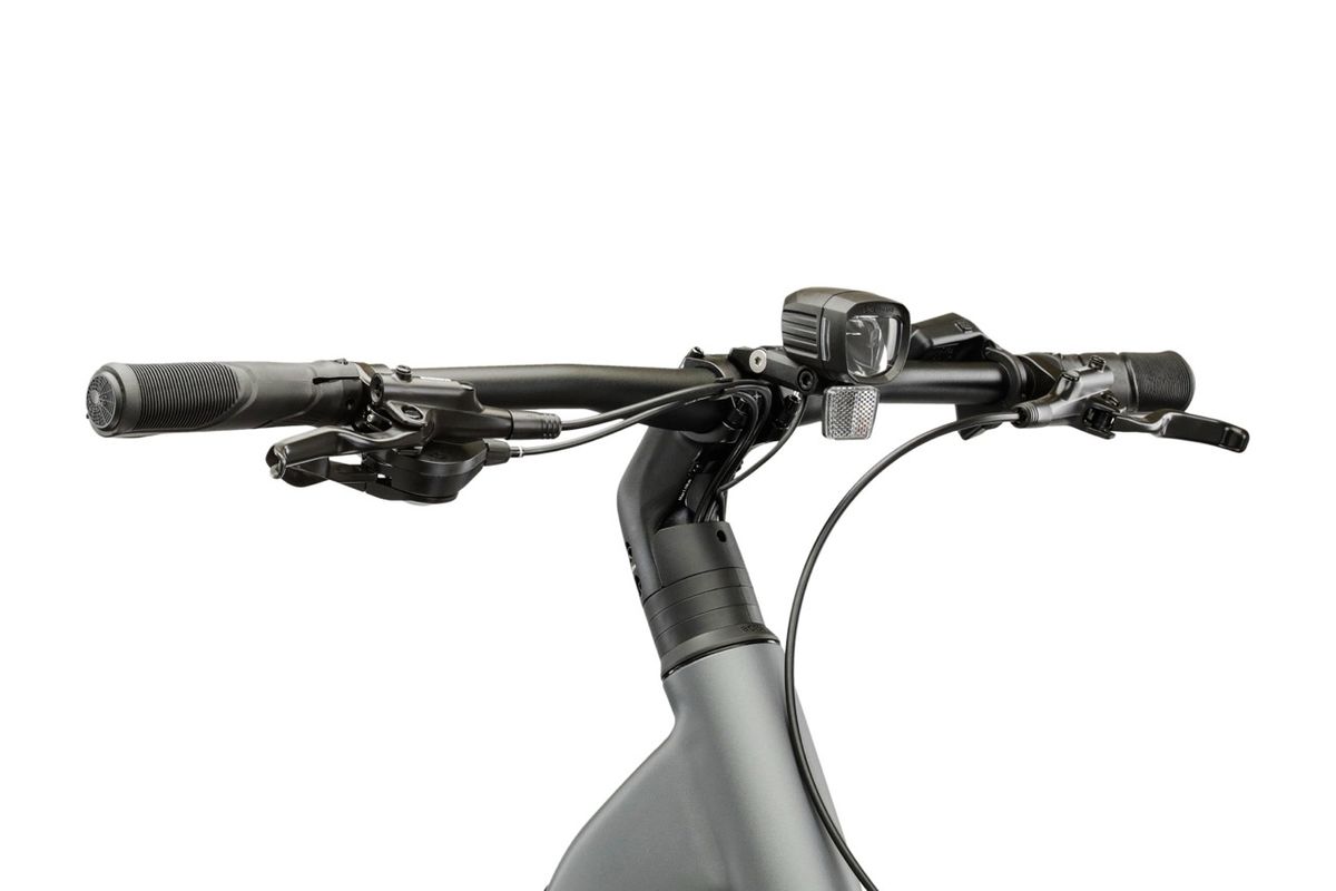 Kezelésoldalon a Bosch Purion 200 kijelző dolgozik, és hasznos extra, hogy USB-port is van – praktikus telefon vagy lámpa töltésére útközben. A rásegítés a specifikáció szerint 0–4 mód között választható, és van walk assist (tolássegéd) is, ami például lépcsőnél, meredek garázslehajtónál vagy szűk helyen nagyon jól jön. A Performance Line PX már a legkorszerűbb „Bosch Smart System” része,, támogatja az eShiftet, az eBike ABS-t, az Auto módot és az eBike Flow app funkcióit, miközben kb. 2,9 kg-os tömegével nem nehezíti túl a kerékpárt minden nap. Az erőt finoman, lineárisan adja le. Alacsony pedálellenállása miatt rásegítés nélkül is könnyen gurul, a szenzorok pedig pontosan adagolják a támogatást emelkedőn és ellenszélben.