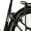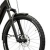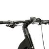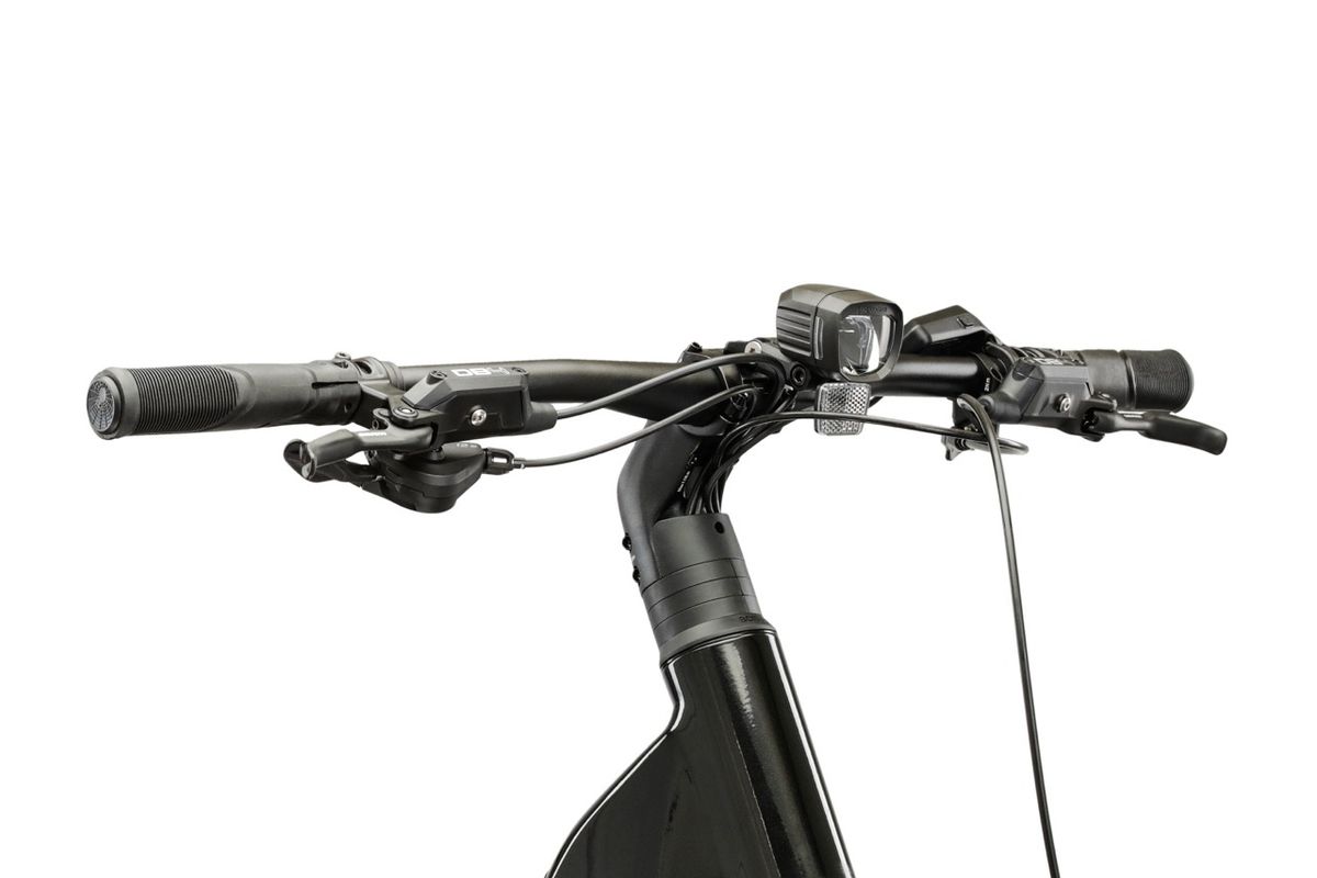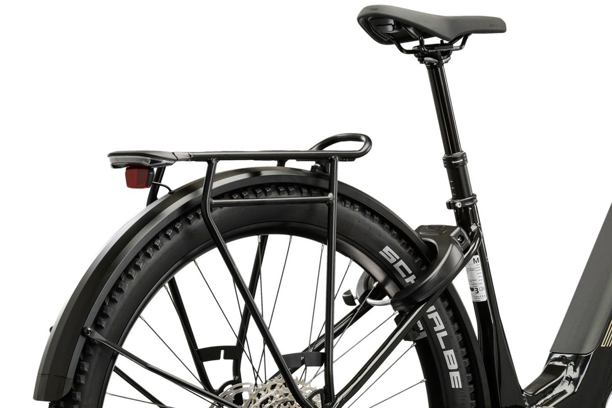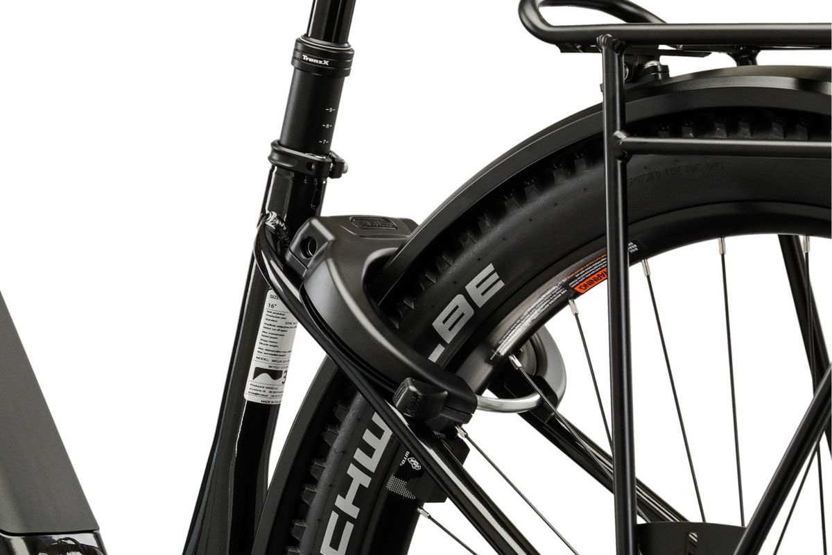 A váz alumíniumból hydroform eljárással készül, alacsony átlépési magasságot biztosít. Ez utóbbi nagyon praktikus idősek számára, emellett a gyerekülést használók is biztos örülnek a könnyű fel- és leszállásnak. A kábelek a kormánytól a váltókig és fékekig a vázon belül futnak, ami letisztult, stílusos megjelenést biztosít a kerékpárnak. A villa is a prémium kategóriából kerül ki. Az SR Suntour MOBIE 34 AIR 2CR egy speciálisan e-bike felhasználásra hangolt teleszkópvilla, amely lényegesen nagyobb merevséget nyújt a nehezebb e-bringák esetében. Könnyű légrugós szisztéma, testsúlyhoz könnyen beállítható. A 2CR zárt csillapítás pedig kétállású kompressziót és állítható visszaút-csillapítást kínál. Ez a kiváló villa 100 mm rugóúttal, kúpos (tapered) nyakcsővel, tárcsafékes kialakítással és 15 mm átütőtengellyel rendelkezik, azaz teljesen naprakész.