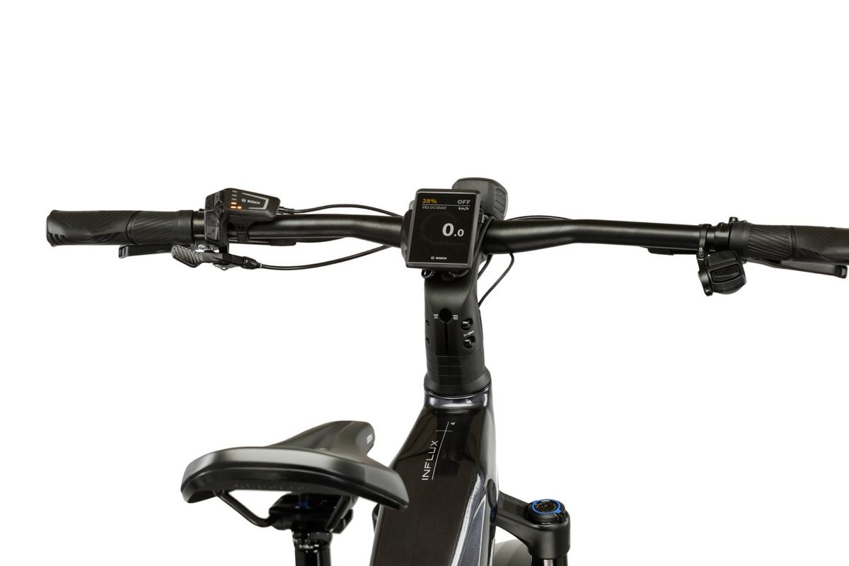 A váz hydroform alumínium kialakítású, hagyományos férfi eMTB vázgeometriával. A legújabb Influx Hybrid generáció esetében a kábelek a kormánytól a váltókig és fékekig a vázon belül futnak, ami letisztult, stílusos megjelenést biztosít a kerékpárnak, egyben véd a koszolódástól is. Az első felfüggesztést egy magas színvonalú RockShox Reba RL ABS teleszkópvilla adja 120 mm rugóúttal. Ez a közkedvelt prémium villa bőven elég csillapítást nyújt a rossz minőségű aszfalton, az erdei földutakon vagy a kijárt ösvényeken. A benne alkalmazott légrugó és a hidraulikus csillapítás finom működést és alacsony tömeget biztosít. Itt már az ABS funkció is elérhető, amely a Bosch appon keresztül programozható is.