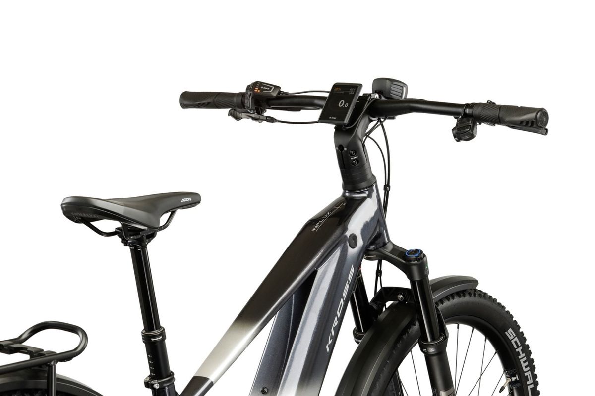 Végezetül a “SUV” jelző nem csak marketing: a Kross integrált világítást, masszív csomagtartót, biztonsági zárat és teljes sárvédőszettet biztosít. Mindennek köszönhetően a bringa alkalmassá válik napi közlekedésre és túrázásra, továbbá nem kell külön beszerezni ezeket a prémium kiegészítőket. Az Influx Hybrid SUV 6.0 800 ideális választás annak, aki magas minőségi színvonalú kerékpárral szeretné megoldani a városi ingázást, a hétvégi túrákat, miközben fontos számára a komfort, az ultrahatékony fékrendszer, valamint a Bosch rendszer világszerte elismert technikai színvonala és háttértámogatása. Az extraszéles 1x12 fokozatos elektronikus váltórendszer és a „mega” 800 Wh akkukapacitás már csak „hab a tortán”.