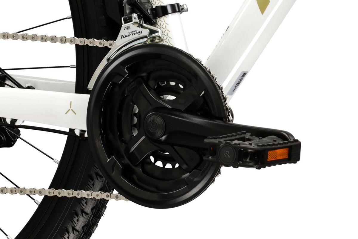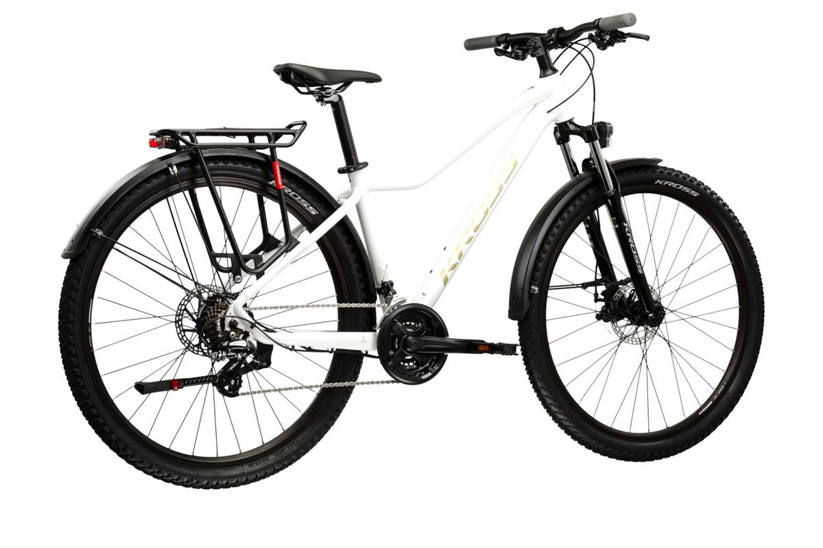 A LEA 2.0 EQ porfestett, ellenálló Aluminum 6061 vázzal készül, illetve trendi színek közül választhatunk. A KROSS a felszereltség tekintetében is figyelembe veszi a hölgyek speciális igényeit: a könnyen kezelhető SHIMANO váltórendszer 21 fokozatot kínál, az extraszéles három első lánctányéros áttételezés terephasználatra is alkalmas. A megállásért mechanikus tárcsafék felel, ami erős és megbízható, és bármilyen időjárásban azonos teljesítményt nyújt.