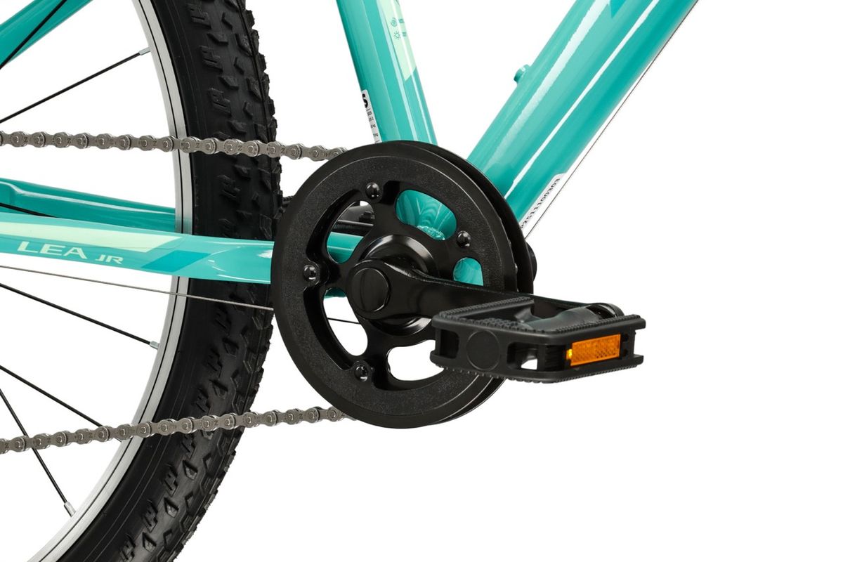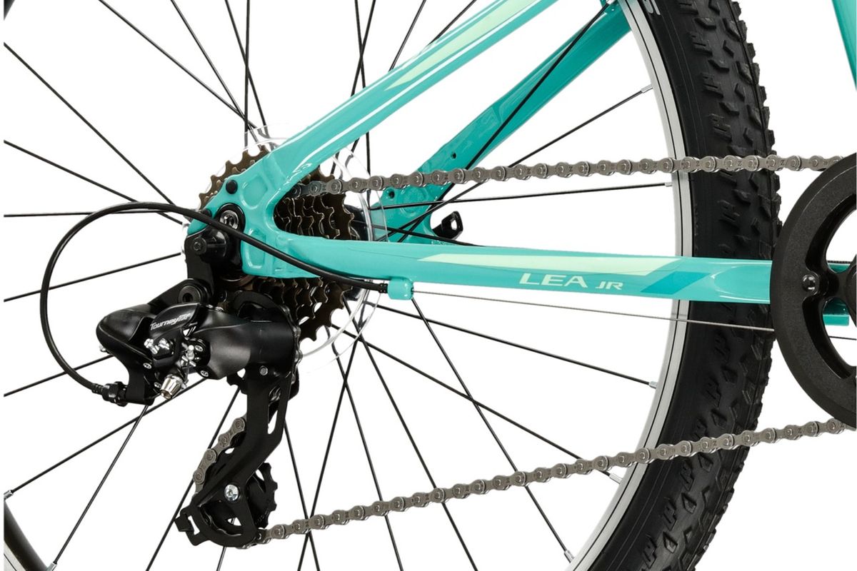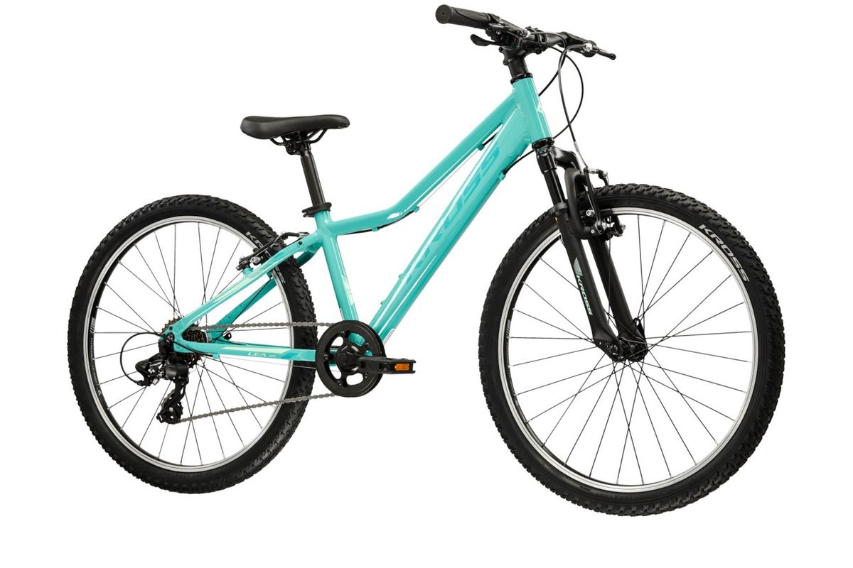 A sorozat többi tagjához hasonlóan a LEA JR 24 alacsony átlépést biztosító vázkialakítást kínál. A tervezők a vékonyka lábaknak megfelelő áttételezést alkalmaznak, illetve a többi alkatrész is a korosztály igényeihez igazított. A bicaj egylánctányéros 1x8 fokozatú váltórendszerrel érkezik, első váltó nélkül, ami feleslegesen bonyolulttá tenné a használatot. A vázhoz alkalmazott Aluminum 6061 alapanyag erős és ellenálló, elől rugósvilla csillapítja az út vagy terep egyenetlenségeit. Kifejezetten gyermekek számára készül, a rugóerő a kis testtömeget veszi figyelembe. A Kross valóban odafigyel a kiskamaszok igényeire!