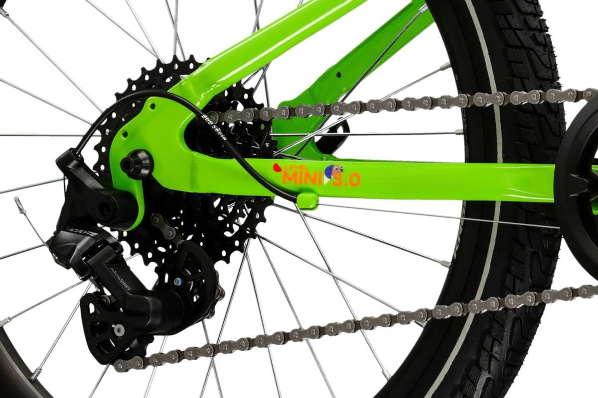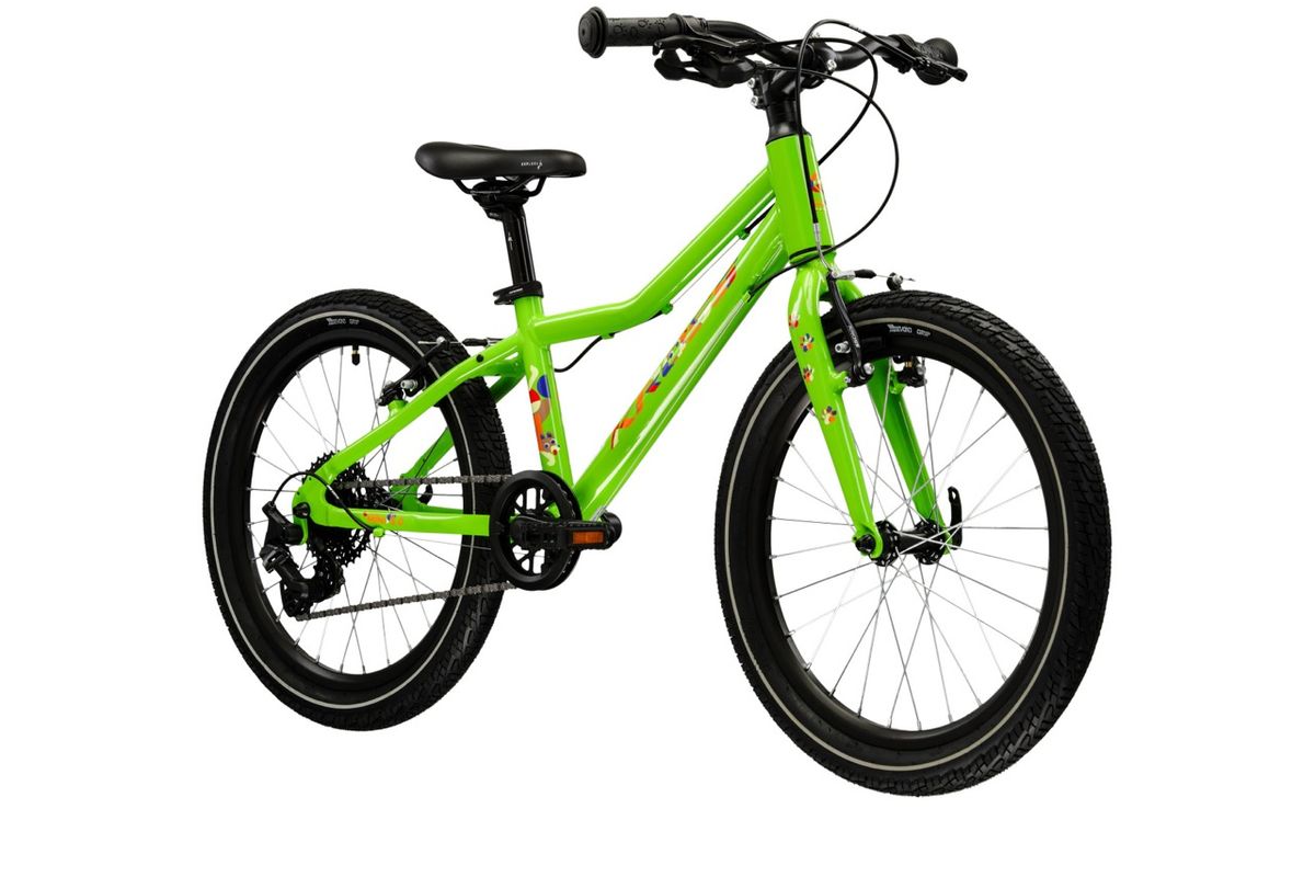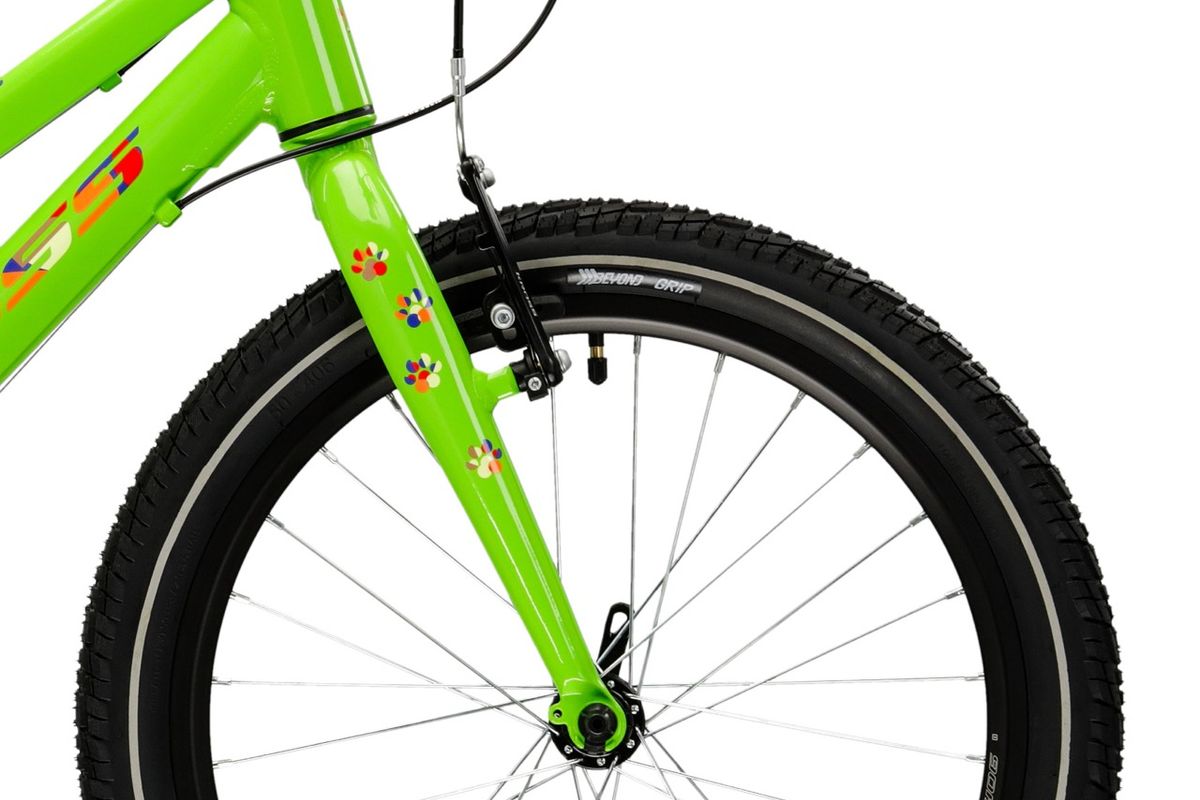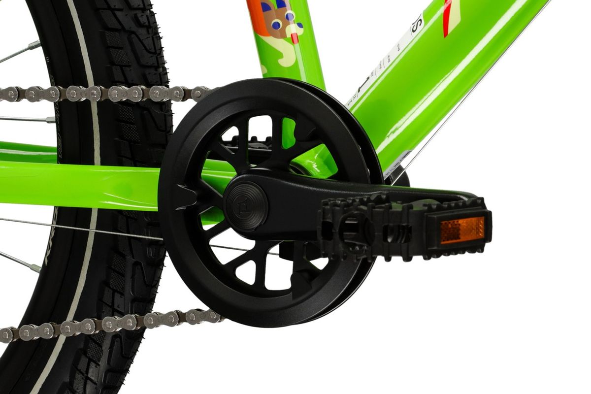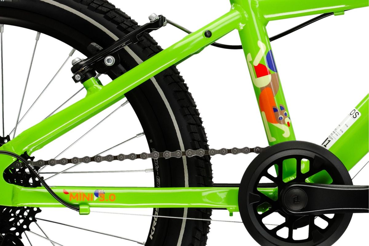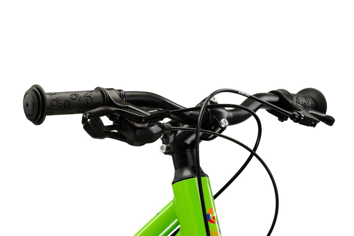 A kerékpár zöld–narancs, fényes fényezése élénk és vidám megjelenést kölcsönöz, amely sok gyerek számára kifejezetten vonzó lehet. A felületkezelés ellenálló a kisebb karcolásokkal szemben, így a bringa hosszabb időn át megőrzi esztétikus külsejét a mindennapos használat során is.