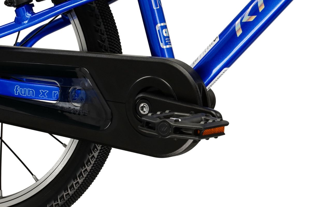 De az alacsony tömeg nem minden: ennél is meghatározóbb a biztonság, a funkcionalitás és az ergonómia. A Liftie 16 elöl-hátul minőségi V-fékkel szerelt, és ami még fontosabb, a gyerekek kezéhez tervezett méretű fékkart találunk a kormányon. A hajtás ennél a kategóriánál ugyancsak kulcskérdés. Ennek megfelelően a KROSS a gyerek méretének megfelelő, rövid hajtókarokkal szereli ezt a modellt, amit a rövid és nem éppen izmos lábak is el tudnak hajtani. A sima futófelületű könnyű gumik ugyancsak segítik a könnyed haladást. Ezen felül a Liftie teljes láncborítást kap, így előzve meg a koszolódást és a kiváncsi ujjak hozzáférését.