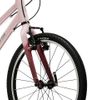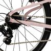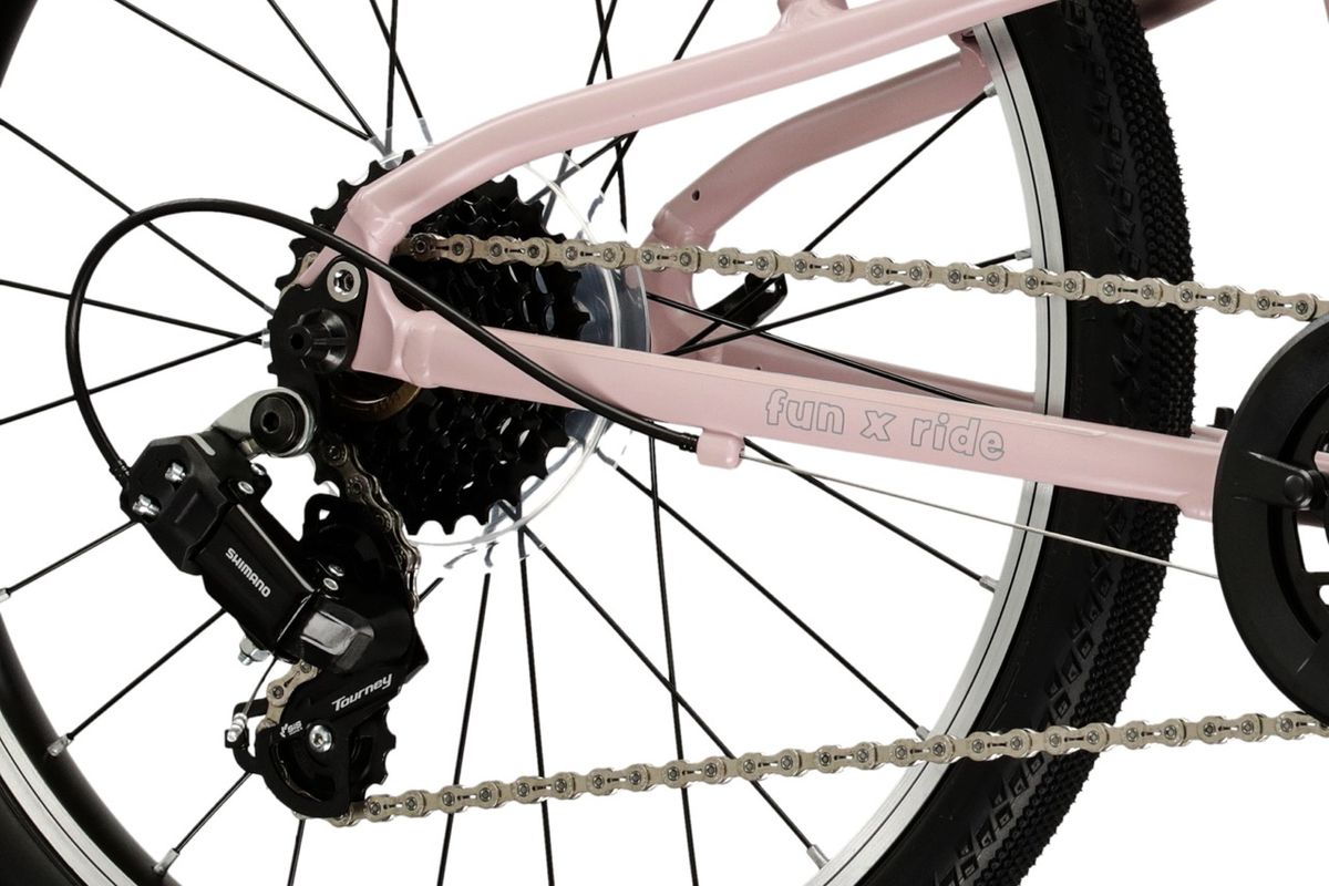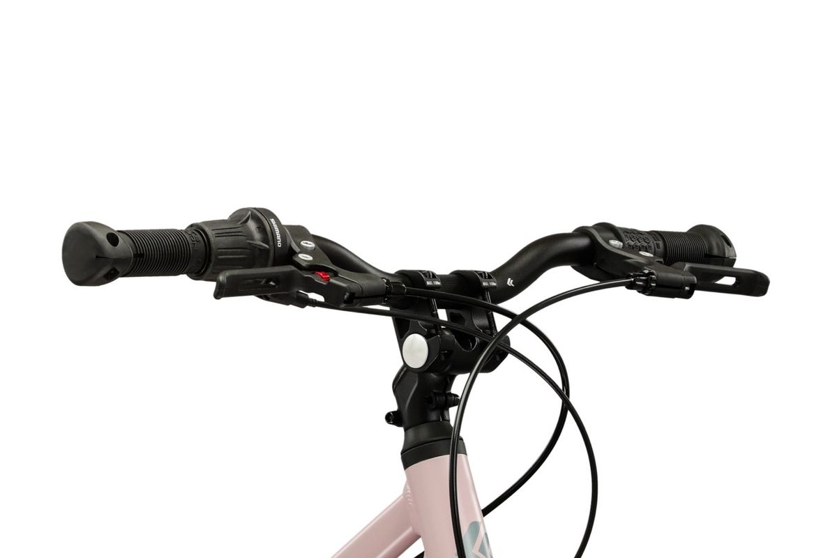 A 7 sebességes minőségi Shimano váltórendszer lehetővé teszi a különböző terepviszonyokhoz való alkalmazkodást, így fejlesztve a gyerekek képességét, illetve növelve az önbizalmat. A sima futófelületű könnyű gumikülsők ugyancsak a hatékony haladást segítik elő. A több irányban állítható kormány lehetővé teszi, hogy a kerékpár tökéletesen igazítható a gyermek testalkatához. A kifejezetten kis kezekhez tervezett markolatok és a rövidebb elérésű, speciális fékkarok maximális kényelmet biztosítanak a fiatal kerékpárosok számára. És nem mehetünk el szó nélkül a színvilág mellett sem: a rózsaszín és grafitszürke matt kombináció modern, divatos megjelenést kölcsönöz, akár kislány, vagy fiú a „delikvens”. A fényezés strapabíró, mivel a tervezők tudják, hogy az élmény hevében a gyerek nem úgy bánik a bicajjal, mint a felnőttek.